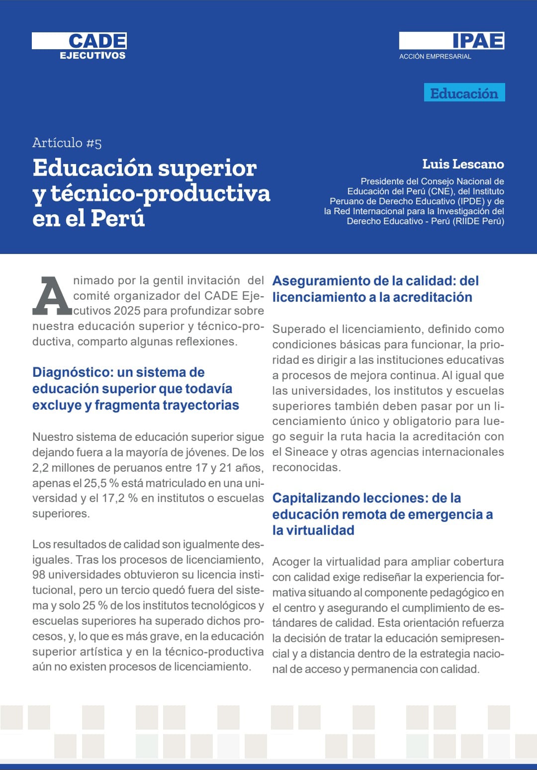 Artículos CADE Ejecutivos 2025 1 día atrás martinminaya Más historias Artículos Noticias Ranking Universitario SUNEDU 1 semana atrás martinminaya Artículos Noticias Clausura «Encuentro Internacional Educación y Ciudadanía Ambiental» 2 años atrás martinminaya Artículos La dimensión transformadora del Derecho Educativo 2 años atrás martinminaya Deja una respuesta Cancelar la respuestaTu dirección de correo electrónico no será publicada. Los campos obligatorios están marcados con *Comentario * Nombre * Correo electrónico * Web Guarda mi nombre, correo electrónico y web en este navegador para la próxima vez que comente.